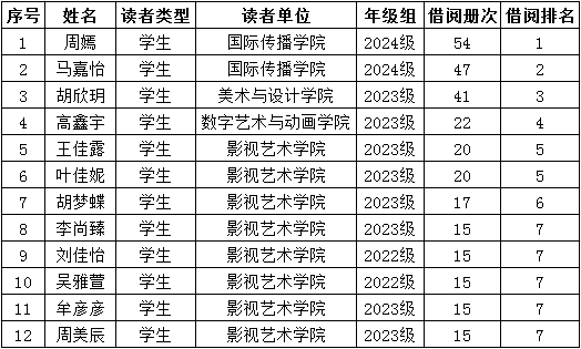 河北传媒学院图书馆2025年6月学生读者借阅排行