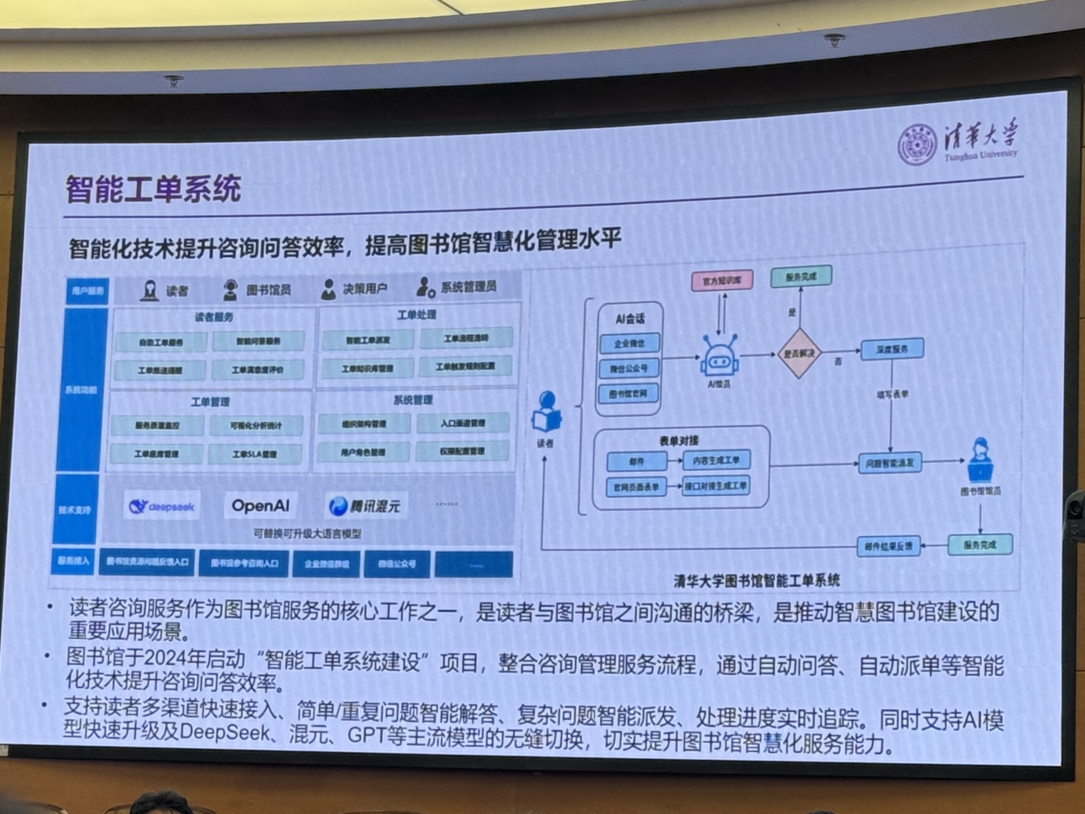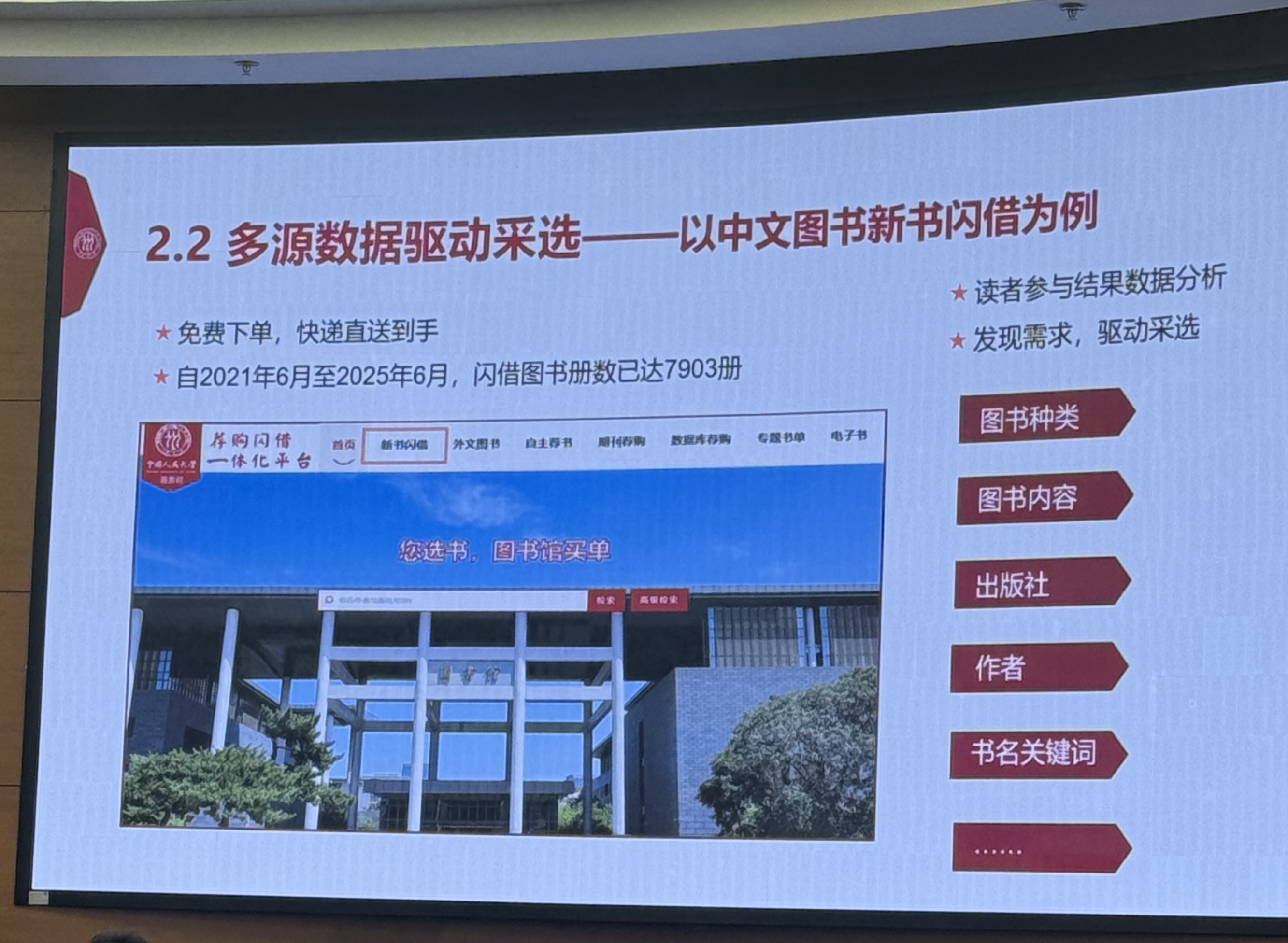 会议聚焦智慧服务与创新实践,清华大学展示了整合学者信息、利用数据提升服务效率、整合开放资源的做法;中国人民大学介绍了基于用户数据优化资源采购、精准评估资源效益、对接教学系统、提供决策支持等举措;中央戏剧学院、中国音乐学院、北京电影学院分别分享了打造特色戏剧资源库、保护数字化传统音乐、探索AI解析电影资源等特色服务创新;中国传媒大学图书馆馆长龙小农提出图书馆空间应灵活适应用户需求,介绍了改造多功能阅读空间、提升环境舒适度、支持多感官阅读体验的实践。