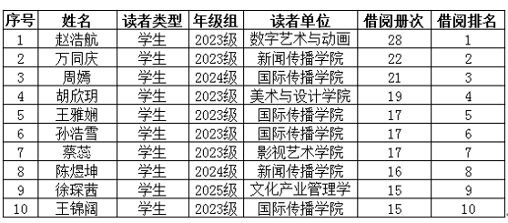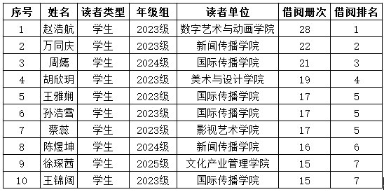 河北传媒学院图书馆2025年9月学生读者借阅排行榜
