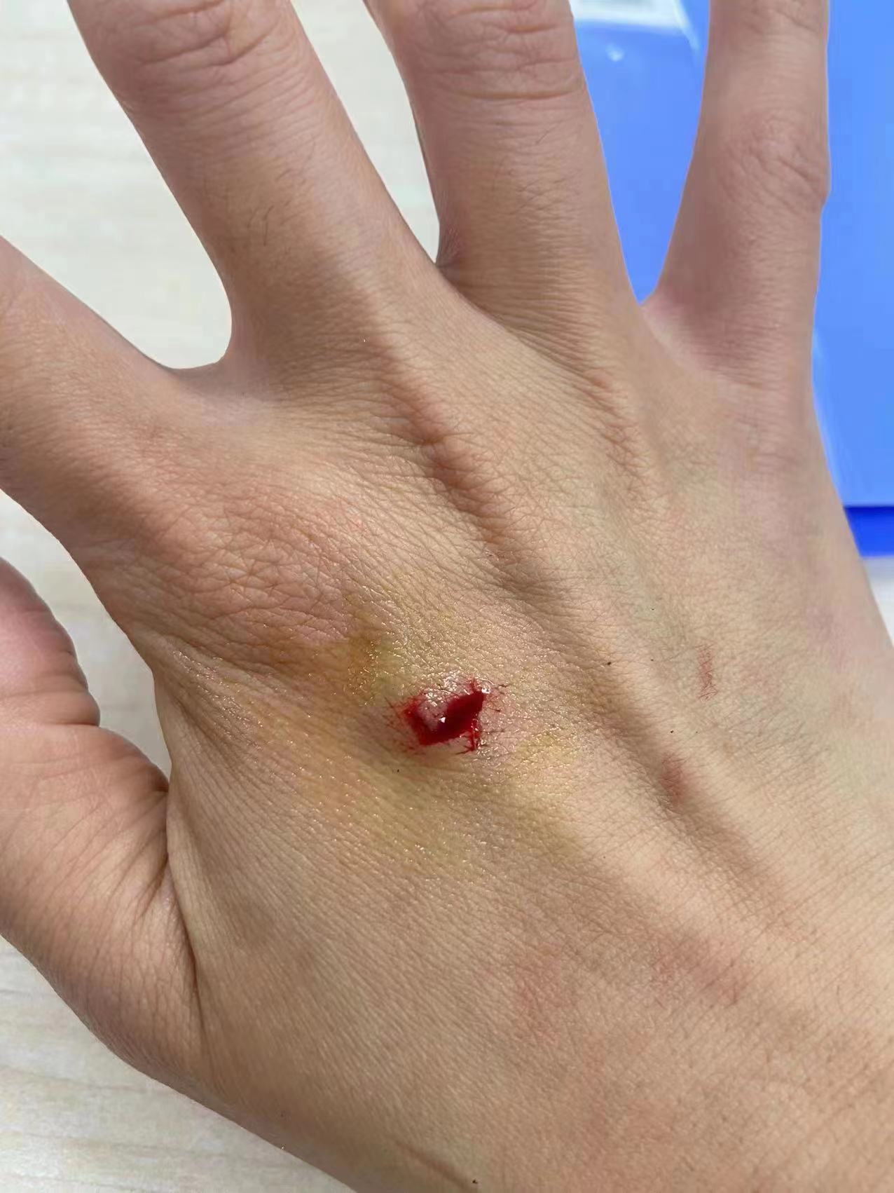 4月17日 09:36,图书馆的温田田老师在值班过程中将手划伤。去医务室进行简单包扎后,温田田老师坚持值完晚班,第二天仍然继续坚持工作。她兢兢业业、任劳任怨,让平凡的岗位因热爱而变得不平凡。党员先锋、奉献先行,温田田老师用实际行动践行着一名共产党员的初心。