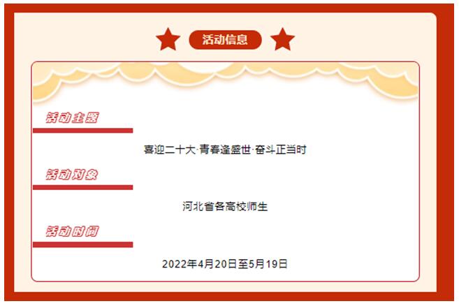 河北省中科杯“喜迎二十大·青春逢盛世·奋斗正当时”主题教育活动火热进行中!线上知识竞赛活动将持续到5月19日,欢迎各位师生踊跃参赛!