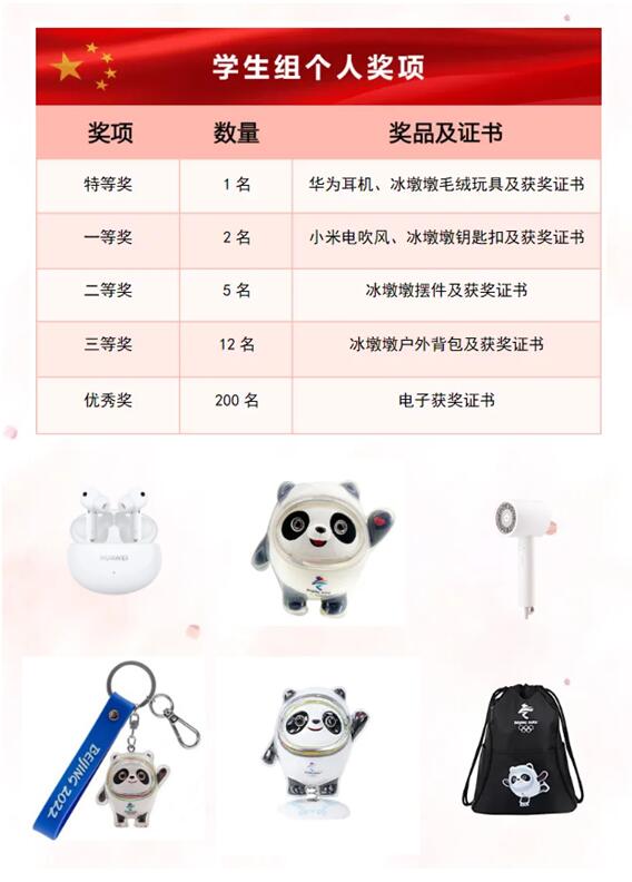4.学生组竞赛成绩第1名获得特等奖,第2-3名获得一等奖,第4-8名获得二等奖,第9-20名获得三等奖,第21-220名获得优秀奖。